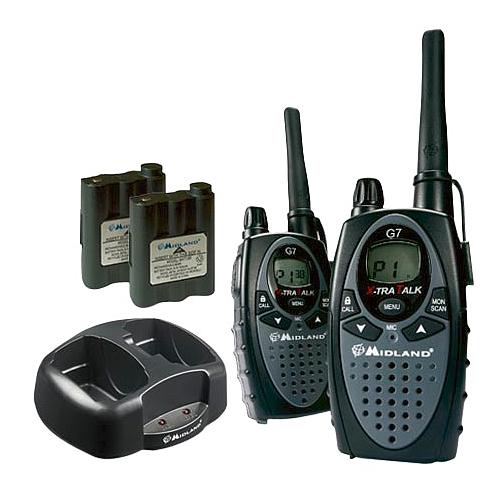 Lot de 2 talkies-walkies bi-bande PMR/LPD avec 2 batteries et un double chargeur de bureau. Caractéristiques techniques : écran rétro éclairé, fonction vibreur, indicateur de batterie faible, économiseur de batteries, réduction des bruits environnant, fonction scan, verrouillage des touches, fonction Roger Beep, fonction Vox pour utilisation main libre, puissance de 500 mW ERP (PMR), bande de fréquence 446.00625 ¸ 446.09375MHz (PMR), espacement des canaux 12.5 KHz (PMR). Température d’utilisation : –20°C à +55°C. Poids (sans batterie) 123g. Dimensions (sans antenne) 58 x 122 x34 mm.