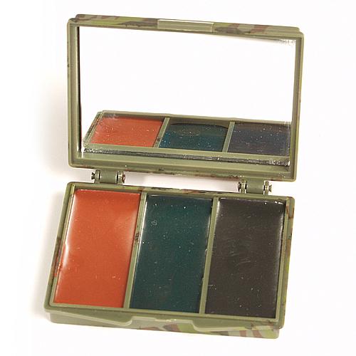 Boîte crèmes camouflage 3 couleurs (marron, vert et noir) avec miroir.