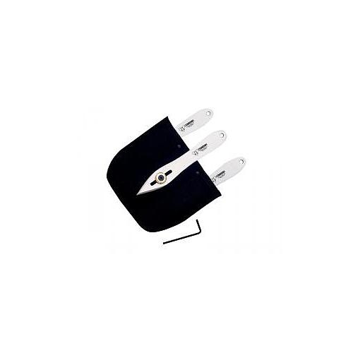 Couteau de lancer Cudeman Made in Spane. Ce couteau de lancer tout en inox est réglable pour plus de précision. Longueur totale: 15cm. Lame: 4cm. Livré dans son étui cuir et sa clé Allen