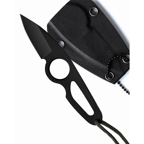 Ce couteau Miltec "Neck" 18cm a une lame de 6.5cm. Son manche est creux et présente des trous.
