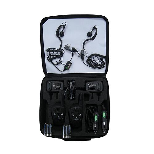 Contenu de la valise : - 2 émetteurs-récepteurs (talkie-walkie) - 2 chargeurs secteur 220V - 2 chargeurs "allume cigare" 12V - 3 piles/accus AAA rechargeables 600mAh - 2 micros cravate, oreillettes "contour d'oreille" PTT - 1 manuel mode d'emploi Caractéristiques : - PMR446 : - Fonction écoute bébé (Baby phone) avec canaux dédiés - Verrouillage clavier - Économie automatique : économiseur de batterie automatique - Indicateur de batterie faible - VOX réglable sur 3 niveaux avec « Réponse » - CALL/SCAN/Moniteur - Roger Beep - Afficheur LCD avec éclairage - Fonctionne avec 3 piles AAA rechargeables 600mAh - Prise accessoire audio : 2 broches connexion Alan - Midland - Icom - Chargeur mural compatible : MW904 - Possible de mettre des 3 piles format AAA LR03 réf: 26581 - Couleur : Noir
