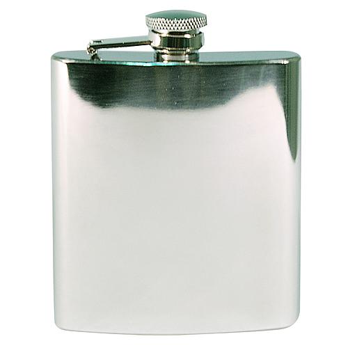 Cette flasque en acier inoxydable est résistante et d'un design élégant. Elle est d'une capacité de 8 oz, équivalent à environ 236 ml.