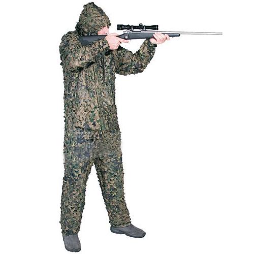 Le système de camouflage Ghillie Jackal Ultra Light Woodland est une version plus légère de la Ghille Suit Jackal, en couleur camouflage Woodland. Il est fabriqué en 100% polyester. Il a une structure 3-D. Il est silencieux et ne produit aucun bruit de froissement. Les matériaux utilisés pour cette tenue Ghillie Suit Jackal sont solides et résistent au feu grâce à un retardateur.