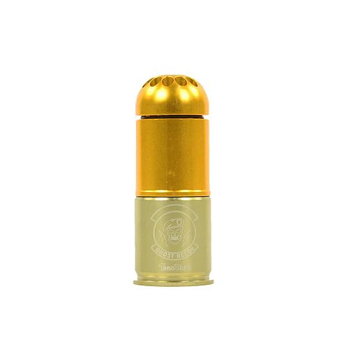 Grenade airsoft TenoZheR 40mm de 120 billes. Possède un motif représentant une tête de mort avec un képi, des éclaires ainsi que la mention Ghost Recon sur la partie inférieur.