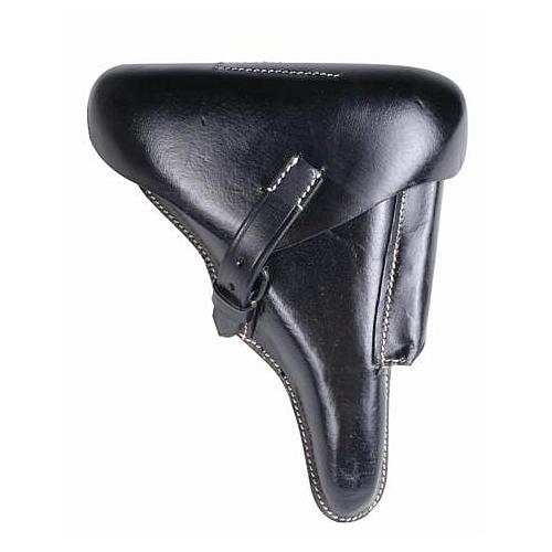 Reproduction en cuir de l'étui allemand de la Wehrmacht du célèbre pistolet P08 LUGER de la Seconde Guerre mondiale (1939-1945). Le holster dispose d'une coque en cuir rigide et d'un emplacement pour un chargeur.