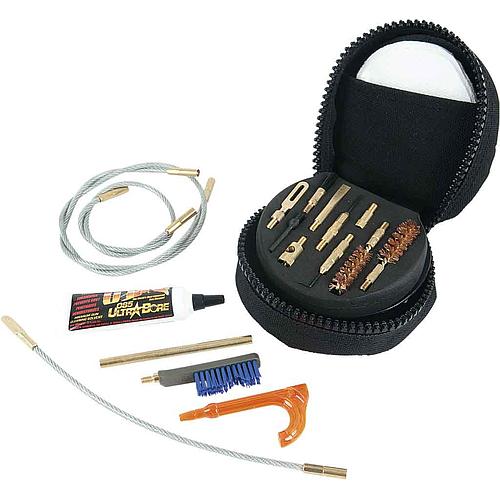 Le pack comprend : - 1 pochette de rangement compartimentée en cordura avec zip large, résistant et permettant le port d'une ceinture ou ceinturon jusqu'à 60 mm de haut - 1 MINI-CD d'instruction - 10 chiffons calibrés - 1 flexible de 78 cm pour canon long - 1 flexible de 20,5 cm pour canon court - 2 barres de rallonge en laiton - 1 écouvillon en laiton - 1 brosse à canon cal .40 - 1 brosse à canon cal .5.56 - 1 brosse à canon cal .9 mm. - 1 brosse à canon cal .5.56 - 1 brosse pour boite à culasse - 1 pinceau - 1 adaptateur OTAN - 1 flacon Ultra Bore® nettoyant-lubrifiant-conservateur - 1 écouvillon d'extraction (se fixe à l'opposé du flexible) - 1 tige T qui passe dans le trou de l'écouvillon d'extraction pour pouvoir tirer le flexible - 1 curette en laiton - 1 chasse-goupille en laiton - 1 pic coudé en laiton - 1 coude lumineux pour l'inspection du canon - 1 notice d'utilisation complète en français.