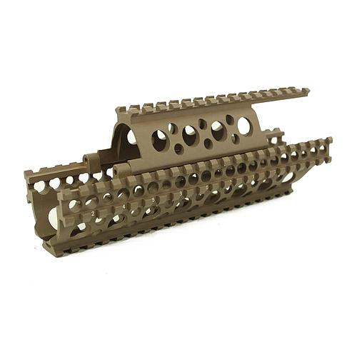 Poids: 292 g Matériau: aluminium Longueur: 215 mm Largeur: 60 mm Hauteur: 80 mm Couleur: le coyote Détails du produit: Rail à fixer conçu pour la série AK. Pour certains modèles, pour monter le rail, il nécessite de quelques petites modifications du verrou du rail. Le rail supérieur a une longueur de 15,5 cm Les deux rails de côté ont une longueur de 21,5 cm Le rail inférieur a une longueur de 19,5 cm