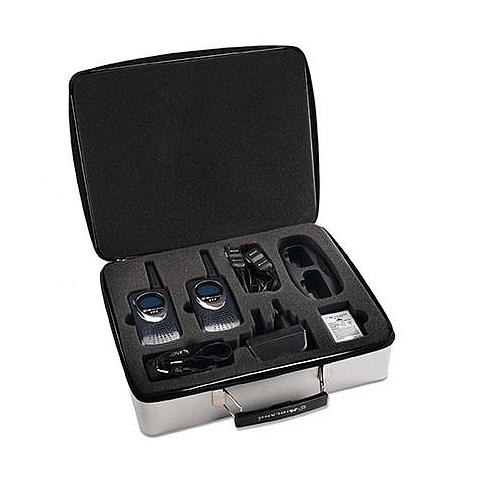 Lot de 2 Talkie Walkie 777 Midland présentés dans une très belle mallette en aluminium qui vous facilitera leur transport. Il est fourni avec sa batterie 7.2v 650mAh, son double chargeur bureau, deux oreillettes filières, deux clips ceintures et deux dragonnes. Ecran rétro éclairé de couleur bleuté. Il possède la fonction vibreur ainsi que la fonction VOX qui active automatiquement l'émission pour avoir les mains libres. Caractéristiques techniques : PMR 8 canaux, LDP 69 canaux, 38 tons CTSS pour réduire les interférences, fonction appel sonore avec la touche "CALL", Dual Watch et Roger Beep on/off. Dimensions: 8 x 4 x 1.5cm.