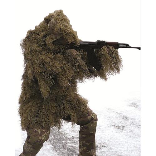 Cette parka Ghillie "anti fire" est fabriquée en 100% polyester. Elle est ignifugée. Elle est livrée avec un sac de transport. Taille unique. Cette parka Ghillie vous permettra de passer inaperçu dans les forêts pendant vos parties d'Airsoft.