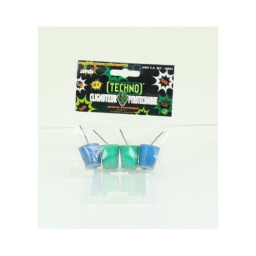 Ces "techno artifices" ont un effet stromboscope de flashs successifs offrant une luminosité époustouflante. Ils sont dotés d'une mèche étanche et sont de couleur Verts et Blancs.
