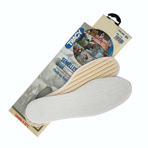 La semelle Coolmax est composée à 90% de Coolmax et 10% de polyester. Le matériau ultra performant Coolmax, produit déposé d'une grande firme américaine, est un type de polyester spécialement conçu pour lutter contre l'humidité. Ainsi, la semelle Coolmax permet à vos pieds de rester au sec et au frais même en cas d'activité intense puisque la technologie Coolmax évacue la transpiration vers l'extérieur. Lavables en machine, la semelle Coolmax est également très facile à entretenir.