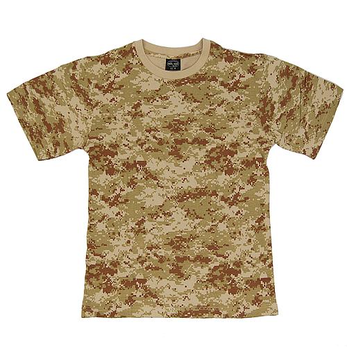 Le T-shirt camo est en tricot jersey de haute qualité 100 % coton et de couleur camouflage Digital Désert. Il est de forme tubulaire à col rond et à manches courtes. Pratique et confortable, le T-shirt camo est un produit clé de votre surplus militaire!