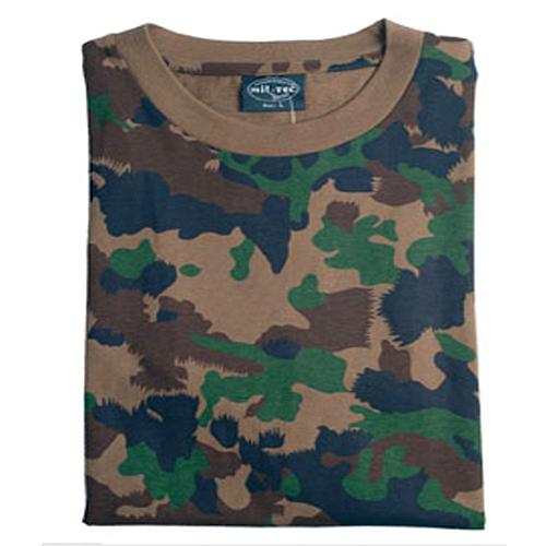Le T-shirt camo est fabriqué en tricot jersey de haute qualité 100 % coton, pesant entre 140 et 145 gr/m². Il est de forme tubulaire à col rond et à manches courtes. Pratique, solide et confortable, le T-shirt camo est un produit clé de votre surplus militaire! Il existe de la taille à S à 3XL et est décliné en une dizaine de camouflages différents.