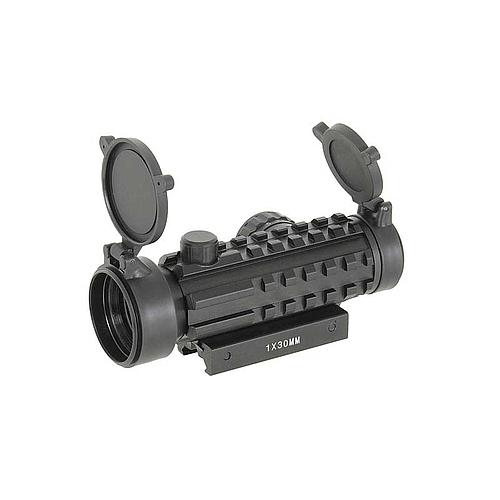 Viseur Point rouge et vert 1x30 en aluminium avec 3 rails picatinny pour fixer des accessoires dessus.